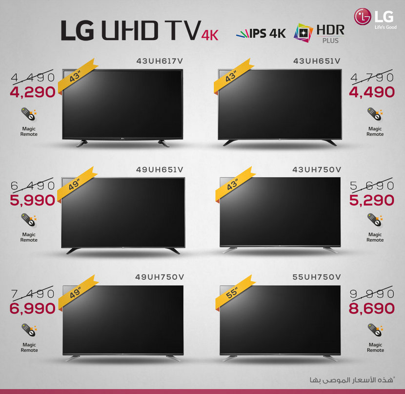 جدول أسعار شاشات lg في المحلات والمتاجر الكبرى